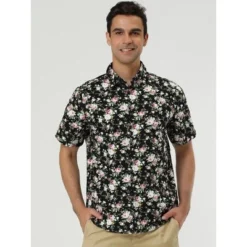 Lars Amadeus Men’s Summer Floral Printed Short Sleeves Button Down Beach Hawaiian Shirt