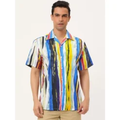 Lars Amadeus Men’s Summer Hawaiian Short Sleeves Button Down Color Block Stripe Patchwork Shirts