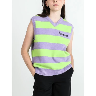 - CUSTOM DESIGN: Stand out with this knit sweater vest that features an embroidered Goosebumps logo on bold purple and green stripes, paying homage to the iconic series.