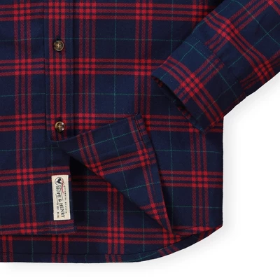 Our perfectly cozy button down shirts are made with hefty shirting weight flannel in a range of richly colored classic plaids. We’ve sueded the fabric on both sides to create a soft and lofty finish that resists pilling, and our high quality 100% organic cotton ensures a long life to be worn, loved, and passed down. Faux tortoiseshell buttons at the pocket, cuffs, and placket polish off the look. This shirt is also part of our family dressing collection and can be found in our Boys section.