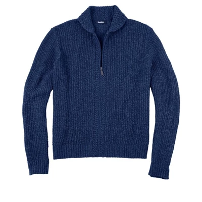 Add a layer without the bulkiness of a pullover with this zip-front shawl collar cardigan. A full zip front means you don’t have to fuss with buttons. It’s also substantial enough for warmth but is made from a soft acrylic knit that doesn’t feel too heavy.
