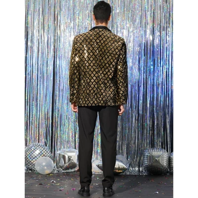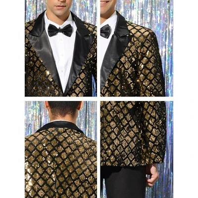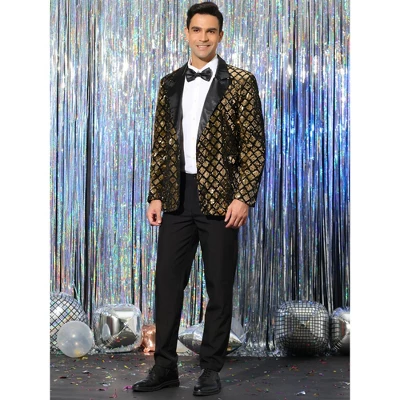 - Peak lapel, one button closure, glitter argyle pattern, shiny sequin tuxedo blazer