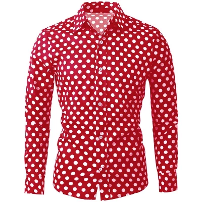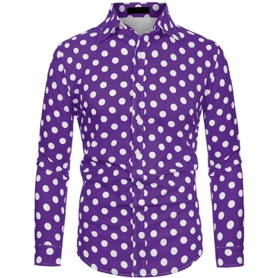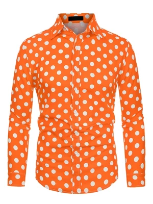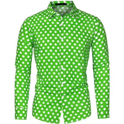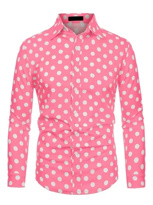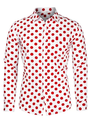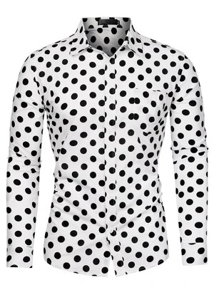 The polka-dot shirt is a weekend wardrobe essential. This shirt has a curved hem, both practical and versatile. With a cotton construction and fitted tailoring, this all-over oversized dot print button-down features a spread collar. Layer this shirt over a basic tee for a nod to laid-back summer style. Style with jeans and sneakers to build up a casual, smart look.