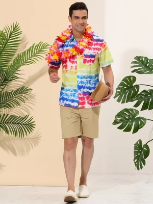 - Tie-dye, color Block, button closure, short sleeve, hawaiian striped shirts