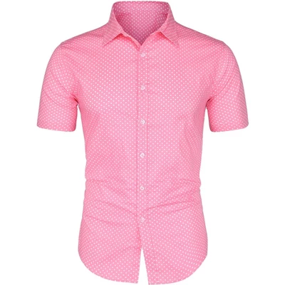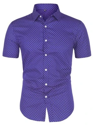 A handsome addition to any outfit let alone wardrobe, this classic fit shirt features a buttoned front and a pointed collar.Its short sleeves lend it a hint of ease, but its polka dots print rounds out its overall refined appeal.It is suitable for parties, travels, hanging out, and everyday wear.The model is wearing a Large size.