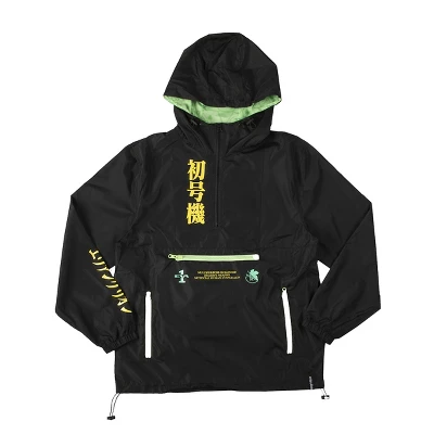 Introducing the ultimate fusion of style and functionality, the men’s black Neon Genesis Evangelion reflective anorak jacket. Embrace the enigmatic world of Evangelion with its captivating design adorned with reflective green Unit-01 symbols and vibrant yellow kanji letters. Crafted with precision, this anorak jacket boasts water repellency, ensuring you stay prepared for any weather. Its adjustable hood adds versatility while the blue stripes on the sleeves elevate its visual appeal.
