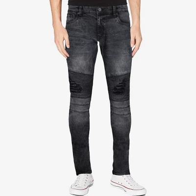 - STYLE : Easy to match ; This slim flex stretch biker jeans can be worn casual, pair with boots and tee for a chic stylish fashion. Jeans feature moto biker design with extra trendy look either ripped, repair washed camo or worn out to choose from.