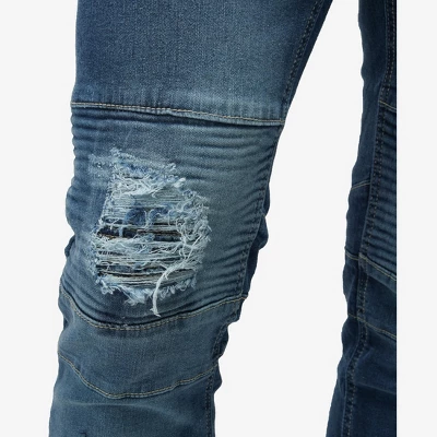 - STYLE : Easy to match ; This slim flex stretch biker jeans can be worn casual, pair with boots and tee for a chic stylish fashion. Jeans feature moto biker design with extra trendy look either ripped, repair washed camo or worn out to choose from.