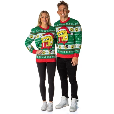 - FUN DESIGN – This knit sweater has a fun holiday-themed SpongeBob SquarePants ugly Christmas sweater design. The interwoven design has a SpongeBob Santa with character ornaments. You can wear this pullover sweater with your favorite pair of jeans or as part of your pajamas