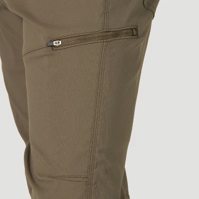 Enjoy more outdoor living in the Wrangler ATG Horizontal Side Zip Pant. The water-repellent finish means a little rain won’t stand in the way of your comfort. These pants also feature articulated knees and stretch construction for freedom of movement. Store small essentials in the scoop front pockets or secure a trail map or a multi tool in its zip utility pocket. With a regular fit through the seat and thigh, this pair looks great on urban adventures too.